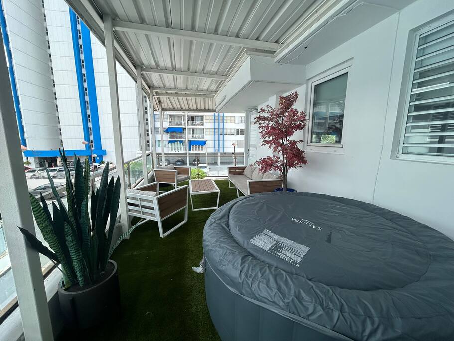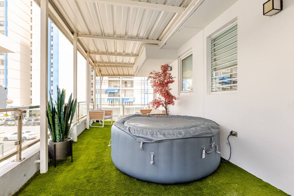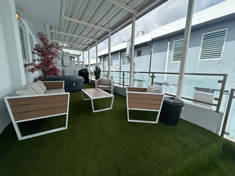Live your dream vacation at this luxury 1BR penthouse in Isla Verde with a huge private terrace, Jacuzzi, and chic island vibes. Just 3 minutes from the airport and steps from the beach, nightlife, and top restaurants — no car needed! • Rooftop terrace with Jacuzzi & sunset views • King bed + plush sofa bed, sleeps 4 comfortably • Full kitchen, spacious living area & HDTV • Walk to beach, bars, and Isla Verde hotspots • Just 3 mins from SJU Airport in prime Isla Verde