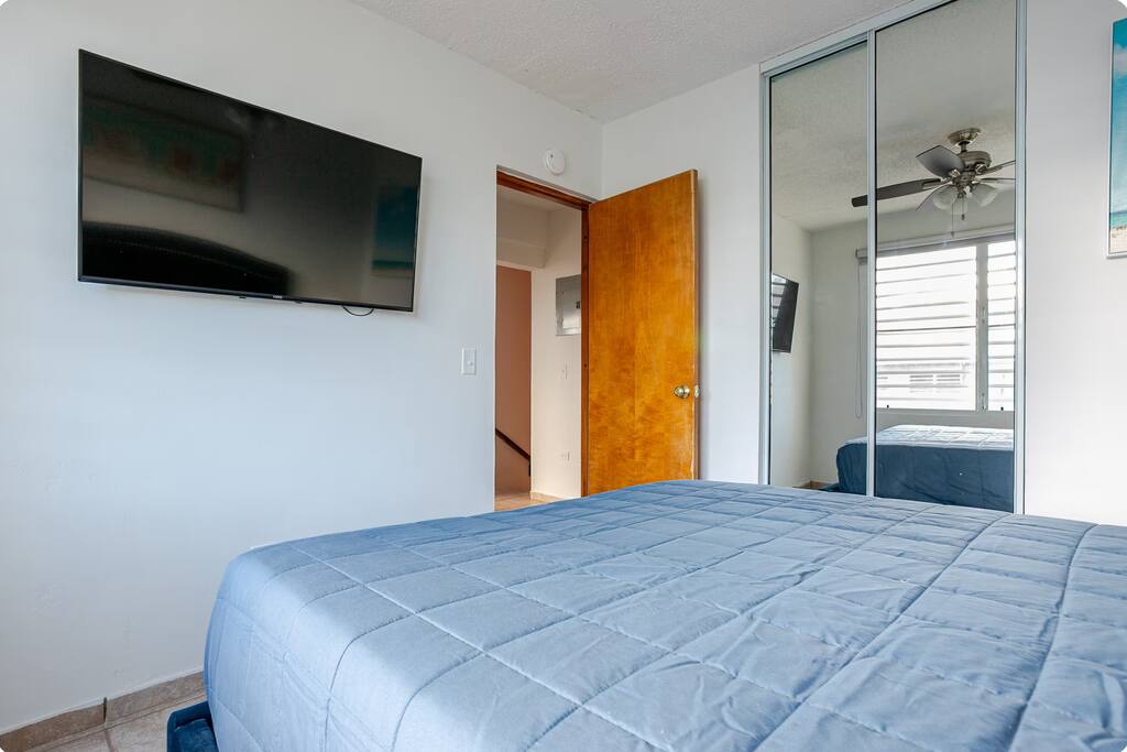 🌴 4-Bedroom Duplex Across from Isla Verde Beach – Spacious, Comfortable & Prime Location Discover the comfort and convenience of staying in our two-level duplex apartment in Isla Verde Beach, Puerto Rico. With 4 bedrooms and 2 bathrooms, this spacious home is designed for groups who want room to spread out while enjoying a prime location just steps from Isla Verde Beach and only 3–5 minutes from San Juan International Airport (SJU). Perfect for families, friends, or business groups, this apartment offers everything you need for a comfortable and budget-friendly stay in one of the most popular areas of Puerto Rico. ⸻ 🏠 Layout – Two Floors of Comfort Our apartment is a true duplex, giving your group more privacy and space than most rentals in Isla Verde: • First Floor – Open Layout Living Area • Spacious living room with comfortable seating and Smart TV. • Dining table for shared meals. • Fully equipped kitchen with all the essentials: refrigerator, stove, oven, microwave, cookware, utensils, and more. Whether you’re preparing breakfast before heading to the beach or cooking a family dinner, the kitchen has you covered. • Open layout design, making the space bright and inviting for group gatherings. • Second Floor – Bedrooms & Bathrooms • Bedroom 1: King bed with closet and Smart TV. • Bedroom 2: Queen bed with storage and Smart TV. • Bedroom 3: Two queen beds with big closet and Smart TV. • Bedroom 4: Another king bed with closet and Smart TV. • Two full bathrooms conveniently located on this level. This setup allows your group to enjoy shared spaces downstairs while keeping the sleeping areas private upstairs. ⸻ 🏊 Amenities for a Relaxing Stay Our building offers amenities that make your stay more enjoyable and convenient: • Swimming Pool: Cool off or unwind at the outdoor pool, open daily from 8am to 8pm. • Laundry Facilities: 24/7 coin-operated laundry available in the building. • On-Site Restaurant & Souvenir Store: Grab a quick meal or shop for keepsakes without leaving the property. • Small Club/Pub: Enjoy a casual nightlife spot located right in the building’s basement. • Parking: Secured parking inside the building (fits regular-size cars). • Wi-Fi & Smart TVs: Stay connected with reliable high-speed internet and enjoy entertainment in every bedroom and the living area.